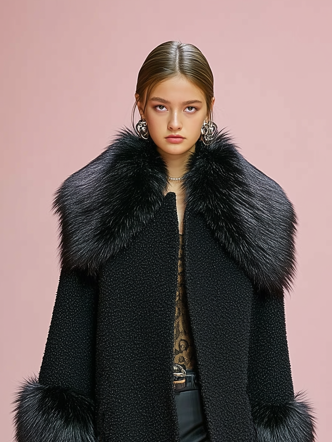 Un elegante cappotto in misto lana con polsini e rever cuciti e bordo in peluche rimovibile per un look versatile e chic.